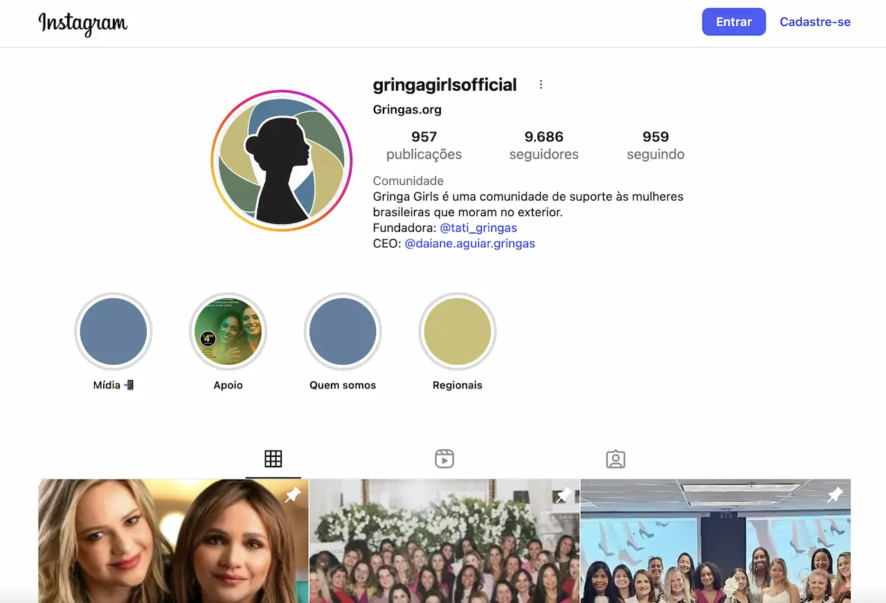 A Gringas é uma comunidade vibrante e acolhedora criada por Tati Lucas em 2016 para conectar mulheres expatriadas, especialmente aquelas que deixaram o Brasil em busca de novos começos e aventuras no exterior. O grupo foi formado inicialmente para levar um pouco da essência brasileira para fora do país, mas rapidamente cresceu e se transformou em um espaço de apoio, amizade e empoderamento. Em 2019, Tati Lucas passou a dividir o comando com sua irmã Daiane Aguiar.